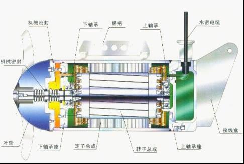4.潛水?dāng)嚢铏C(jī)電機(jī)繞組為F級絕緣,防護(hù)等級為IP68,選用一次潤滑免維護(hù)進(jìn)口軸承,具有油室泄漏檢測和電機(jī)繞組過熱保 護(hù)功能,使電機(jī)的工作更加安全可靠。